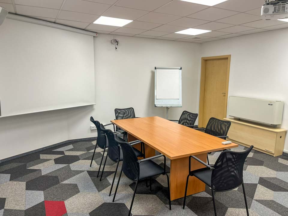 Sala szkoleniowa znajdująca się na I piętrze budynku GAMMA o powierzchni 25 m², przeznaczona na spotkania dla maksymalnie 10 osób. W pełni klimatyzowana sala oferuje kompletne wyposażenie do spotkań, w tym multimedialny ekran z projektorem, flipchart, gniazdka elektryczne oraz dostęp do Internetu (przewodowego i Wi-Fi).